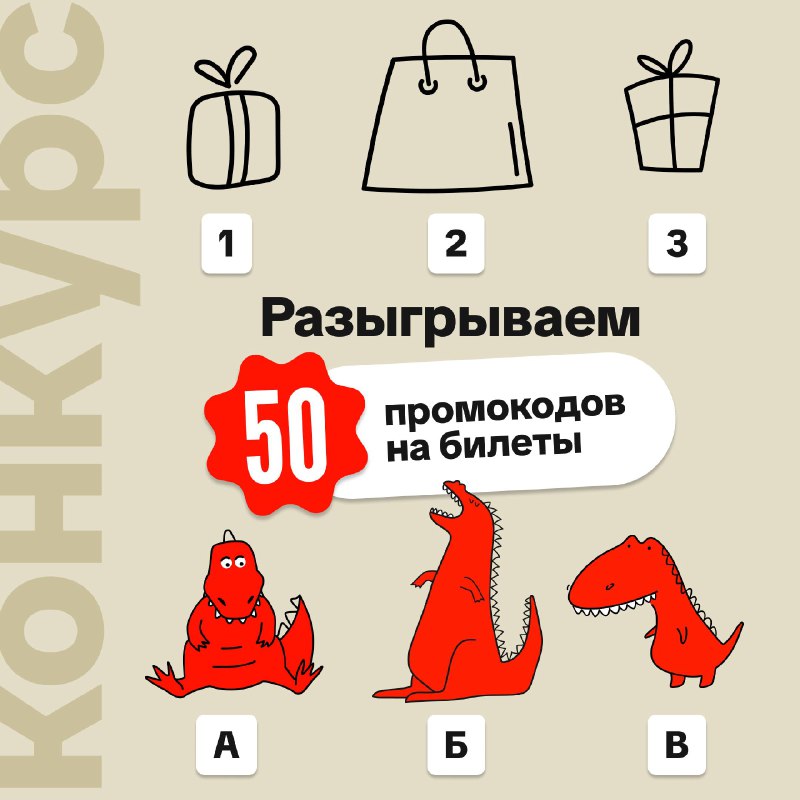 Давайте поможем им разобраться. Сопоставьте динозавра с подарком и напишите свою комбинацию в комментариях в формате цифра–буква с хэштегом #динозавр. 28 декабря мы случайным образом среди правильных ответом выберем 5 победителей и подарим по 10 промокодов на билеты «Хочу Схвачу»