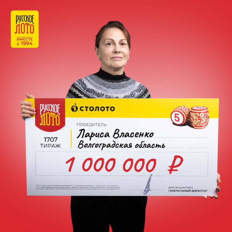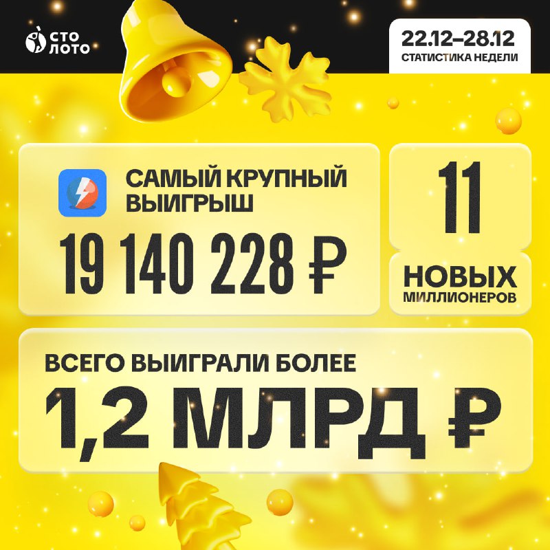 Поздравляем всех, кому повезло и желаем выиграть ещё больше на этой неделе — уже 1 января нас ждёт главный тираж года! В «Новогоднем миллиарде» разыгрываем более 3 500 000 000 ₽, запасайтесь билетами!