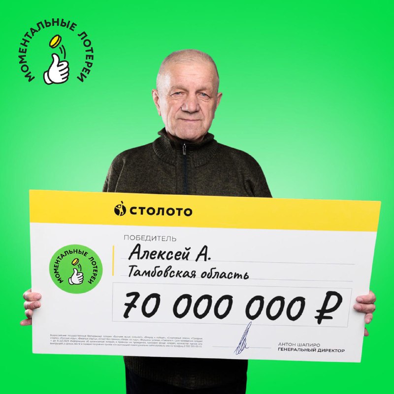 В ноябре он купил билет моментальной лотереи с дизайном, посвящённом «Новогоднему миллиарду» и увидел цифры, от которых перехватило дыхание: 10 000 000 ₽. Спустя месяц билет той же самой лотереи вытянула сотрудница точки продаж, и именно он принёс Алексею ещё 60 000 000 ₽!