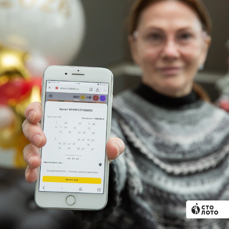 Вы ещё успеваете порадовать себя и близких и подарить им шанс на миллиард! Покупайте билеты на сайте и в мобильном приложении Столото.