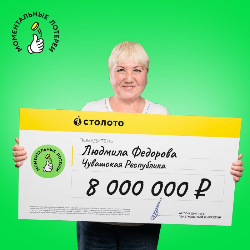 Знакомим вас с новой победительницей! Людмила Фёдорова из Чувашии выиграла 8 000 000 ₽ в моментальной лотерее с дизайном «Русское лото». Людмила всегда была уверена, что выиграет в лотерею и вот как она сама об этом рассказывает: