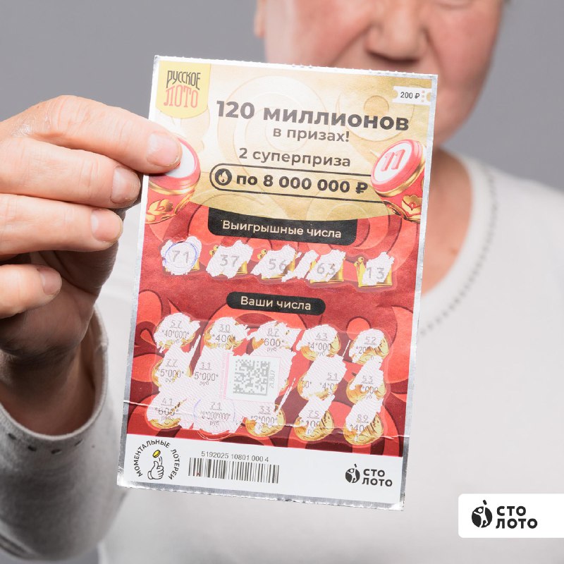 Я верила, что когда-нибудь выиграю по-крупному. А накануне выигрыша — еще и предчувствие, что удача совсем близко. Думаю, дай куплю билеты: взяла три по 200 рублей каждый. Стираю я их всегда на точке, и в тот раз поступила также. Когда дошла очередь третьего, смотрю — совпало число 71 и под ним сумма 8 000 000 ₽, сердце аж застучало.