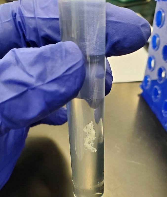 This is what purified strands of human DNA look like in a test tube.