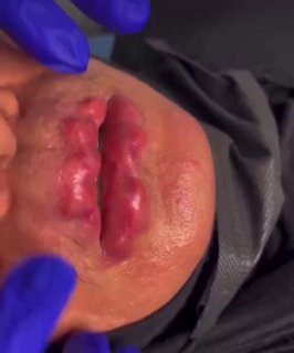 A failed attempt to reshape the lips.