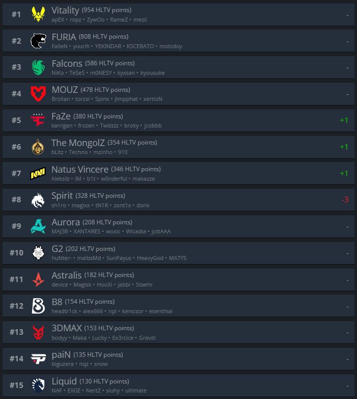 Понедельник — а значит, самое время изучить обновленный рейтинг HLTV.