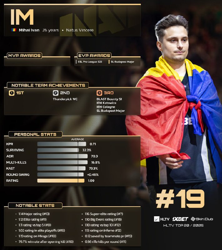 Ранее такой чести удостоился его наставник NiKo, который занял 3-е место в 2021 году.