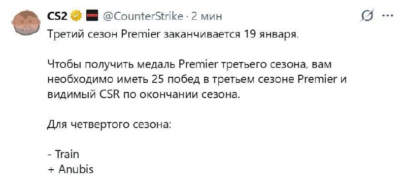 ПОКА МЫ СПАЛИ РАЗРАБОТЧИКИ ВЫКАТИЛИ ОБНОВУ!ANUBIS заменит TRAIN после окончания 3-его Premier сезона 19 января. Напомним вам, что TRAIN пришёл на замену VERTIGO в начале года (5 января) и пробыл в мап-пуле 370 дней.