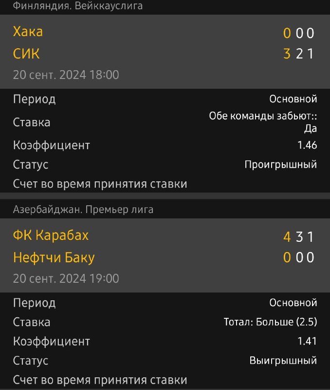 точный счет 1-1 в обеих играх. Я в экспрессе взял