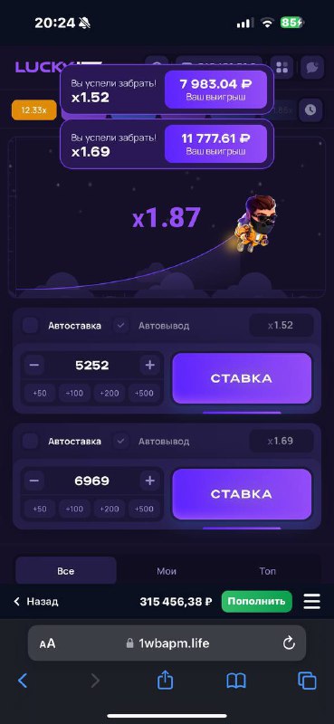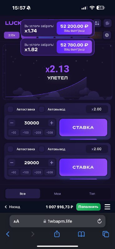 Сделал еще ставку + вывод 1кк