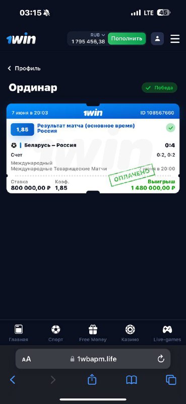 1WIN рабочая ссылка