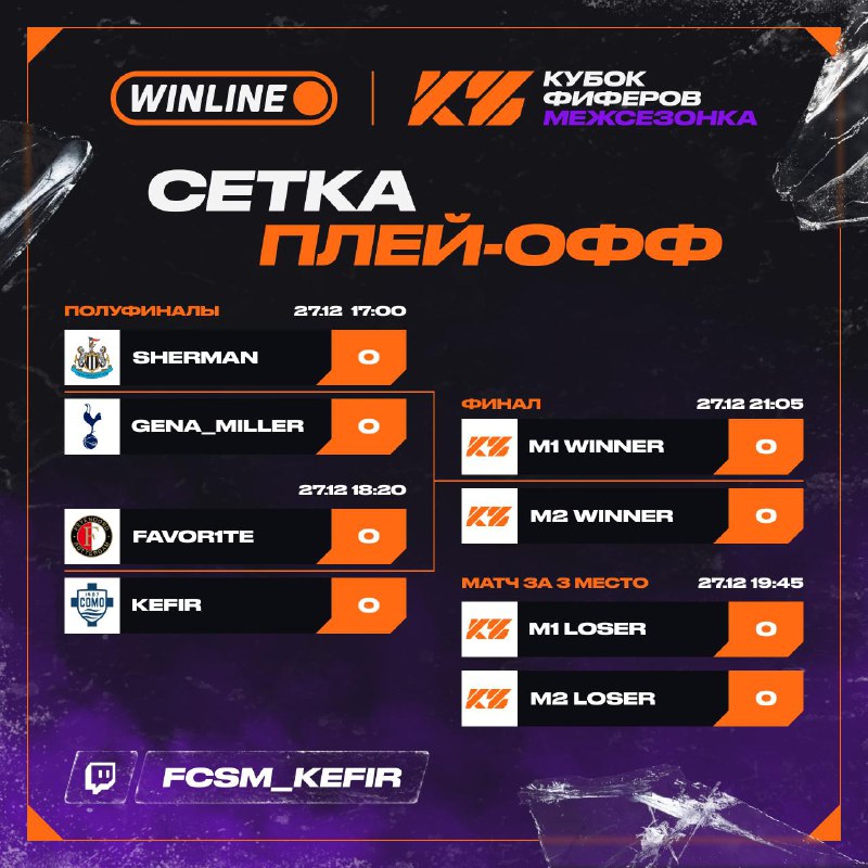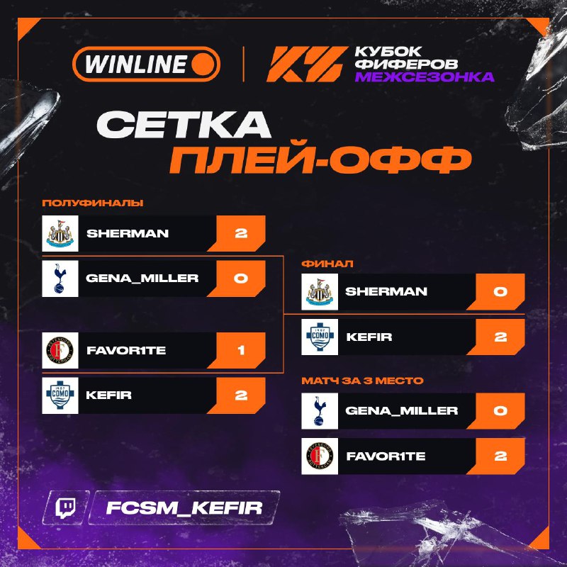 ПЛЕЙ-ОФФ КФ: МЕЖСЕЗОНКАВсе матчи Bo3, проигравшие – в матч за 3-е место, победители — в гранд-финал.