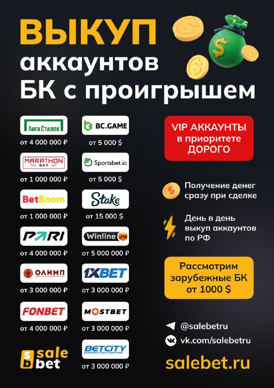 СКУПАЕМ МИНУСОВЫЕ АККАУНТЫ ВСЕХ БК