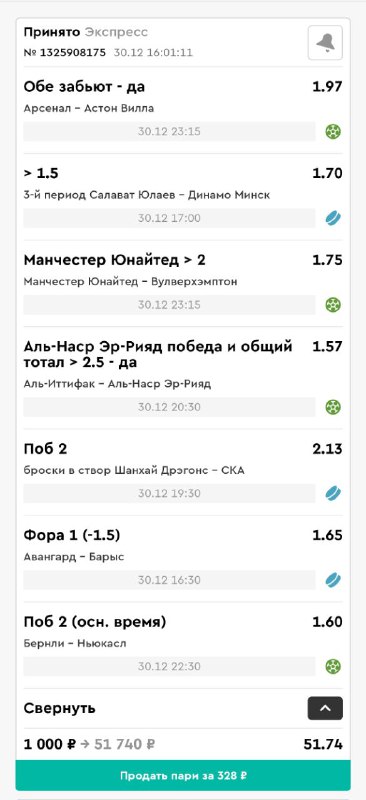 Пишите свои железные прогнозы на сегодня, попробуем собрать экспресс