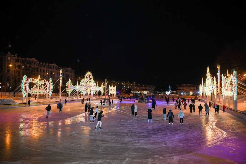 Такая обстановка сейчас на катке в парке «Черное озеро» — сегодня там начался марафон новогодних фильмов и мультфильмов.