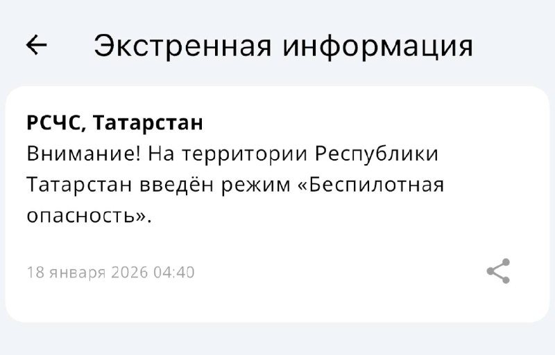 В Татарстане с 4:40 действует режим «Беспилотная опасность»