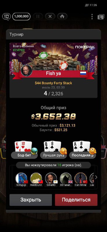Притом за гуд стек, я поставил 2.100.000 фишек и это был бы 6-7 стек даже на финалке) но понятно что если б да кабы)