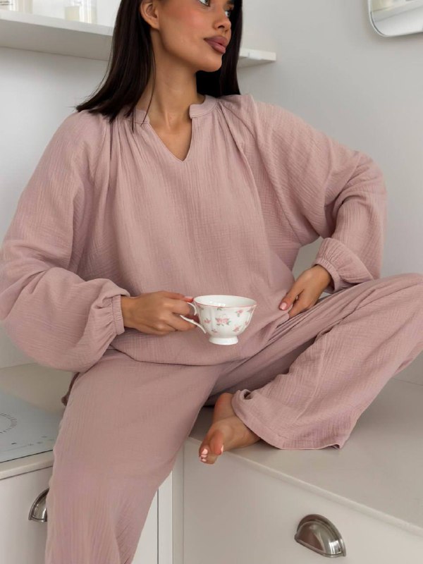 Идеальная одежда свободного кроя для дома состоит из муслина, 100% хлопка, не скатывается и сохраняет форму и цвет после множества стирок. Наша модная хлопковая пижама с брюками отлично подходит для сна, она гипоаллергенна, и воздухопроницаема.