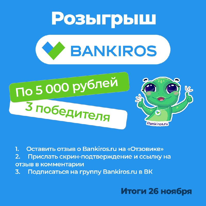 три победителя с выигрышем по пять тысяч рублей.Не упустите возможность получить приятный денежный бонус в преддверии новогодних трат –