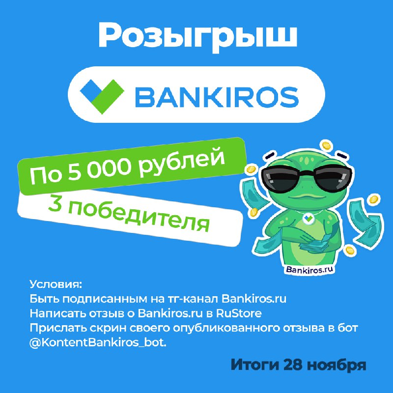 Банкирос дарит деньгиНапомним, что вчера мы запустили розыгрыш в ТГ, для участия в котором нужно: