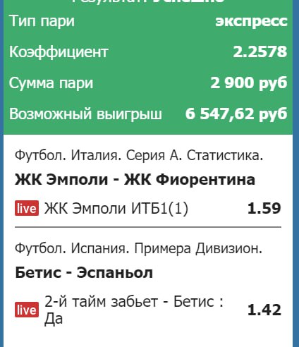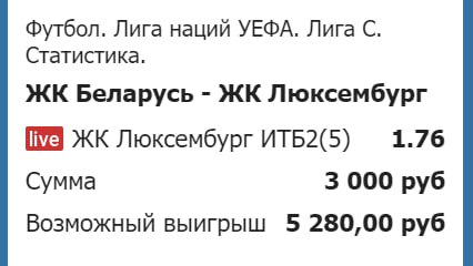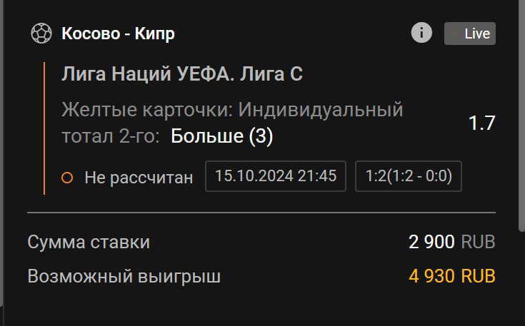 Вы чего не читаете. Ставка на карточки! Карточек 6 после первого тайма! КК считается за две карточки у БК.