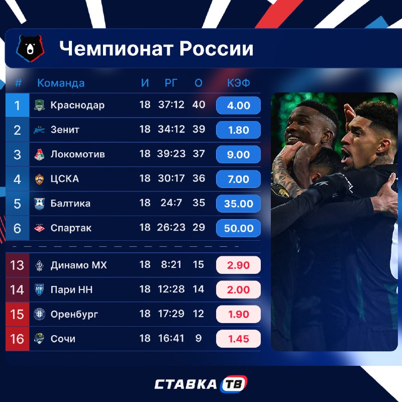 — главных звезд команды, среди которых игроки «Краснодара» и «Акрона»;